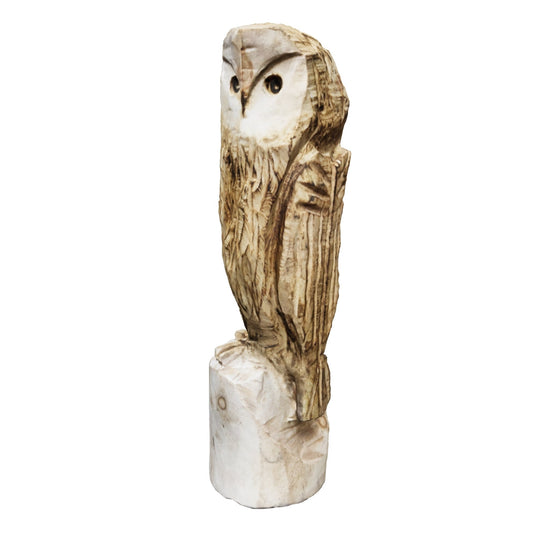 Handgjord motorsågssnidad träuggla i svensk asp – en iögonfallande dekoration för hemmet och perfekt för dig som söker en unik gåva.